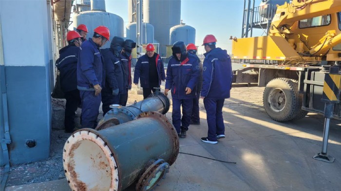 本次設備設施年度檢維修作業(yè)自2024年12月16日啟動,歷經(jīng)20余天。此次維修作業(yè)中,冷凝器更換面臨諸多挑戰(zhàn)。設備拆除難度大、設備體積重、安裝空間狹窄,對施工精度要求極高。但溴素二廠技術人員憑借豐富經(jīng)驗和專業(yè)技能,精心制定施工方案,嚴格把控每一個環(huán)節(jié),確保了拆除與安裝工作安全、有序進行。同時,安全部門全程監(jiān)督,落實各項安全措施,為檢維修作業(yè)順利推進保駕護航。