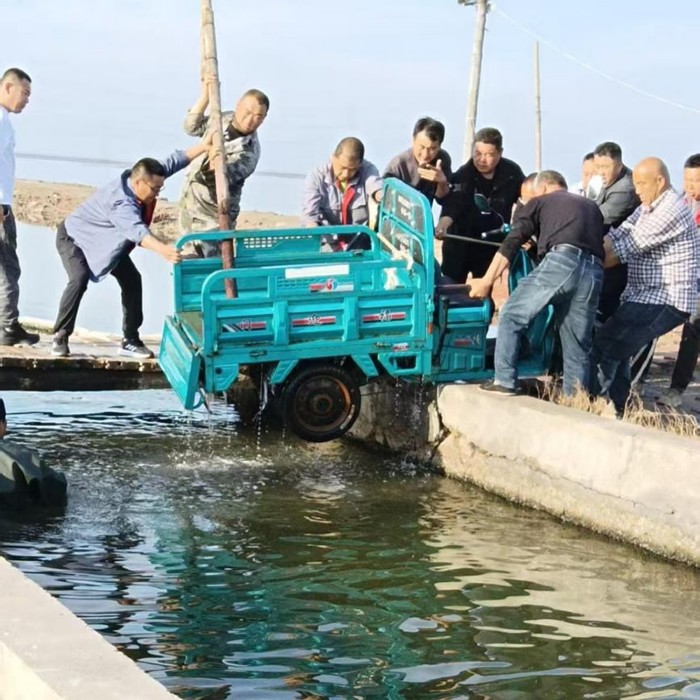 當(dāng)日早上,長(zhǎng)蘆公司制鹵二工區(qū)像往常一樣召開日常性班會(huì),布置揚(yáng)水、制鹵、安全隱患排查等工作。7點(diǎn)左右,當(dāng)會(huì)議剛剛結(jié)束,參會(huì)職工們突然聽到不遠(yuǎn)處傳來大聲呼救,職工魯樹、王長(zhǎng)在馬上跑出會(huì)議室,順著呼救聲發(fā)現(xiàn)不遠(yuǎn)處的第四揚(yáng)水站往南的揚(yáng)水渡槽處,有人騎三輪車掉進(jìn)了溝里。溝中鹵水達(dá)到1.5米左右,駕駛?cè)吮蝗嗆噳鹤〔荒苊撋恚闆r相當(dāng)危急。二人顧不得脫去多余衣服就跳入水中,合力救出了落水人員。隨后趕到的10多名職工在工長(zhǎng)王洪智的組織下,及時(shí)把三輪車從水中撈出。