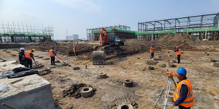 建筑工程公司為確保項目施工進(jìn)度,節(jié)前召開專題會議,對“五一”期間的施工任務(wù)進(jìn)行詳細(xì)安排,制定了科學(xué)合理的施工計劃。鳴歧項目為了提高施工進(jìn)度,利用晚上時間進(jìn)土,晝夜奮戰(zhàn),保障了各個施工單體及場地基礎(chǔ)回填用土需要,假期期間進(jìn)土1萬余方,為后續(xù)施工進(jìn)度奠定了堅實基礎(chǔ)。為確保長蘆鹽業(yè)公司泵站工程順利推進(jìn),工程技術(shù)部調(diào)配技術(shù)骨干班組,開啟了全天候奮戰(zhàn)模式。截至目前,鳴歧項目一、二車間基礎(chǔ)墻砌筑、圈梁澆筑已完成;港城填方項目已完成噴砂區(qū)填方并通過驗收,其他項目正在加快推進(jìn)中。