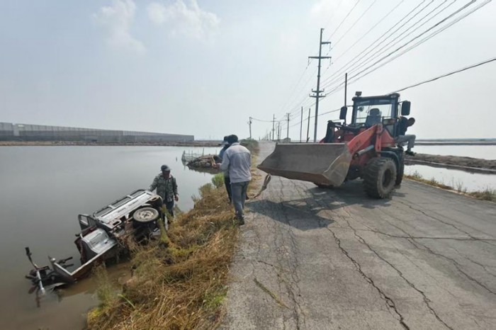 上午10時左右,海豐鎮(zhèn)村民駕駛?cè)嗆囃窘?jīng)建筑工程公司東側(cè)路段時,因避讓車輛造成三輪車失控,連人帶車沖入路北的水中。三輪車落水后迅速傾斜下沉,情況危急,村民大聲呼救。